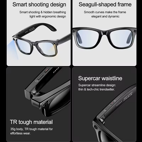 The Aura Vision Glasses seamlessly integrate the future of connectivity into stylish eyewear. Built with AI intelligent interaction and translation, these glasses feature durable TR tough material and discreetly manage HD photo and video recording, all controlled by a simple touch button.